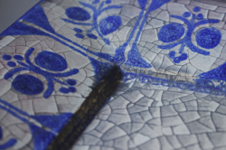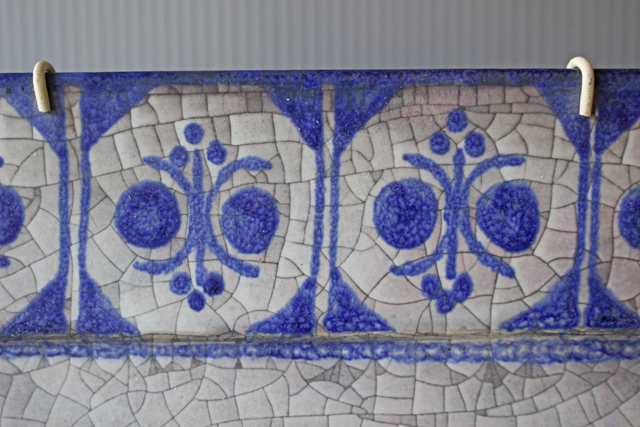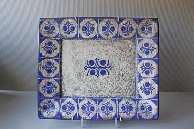 デンマーク、Michael Andersen & Son社のデザインプレートです。こちらはドイツ/ブリュッセルの世界万博で金賞を受賞したPersia Techniqueと呼ばれる貫入による独特の技法が使われています。モザイク画のような味わいが個性的な作品でです。迫力のある大サイズでテーブルの上に置いてもとても存在感があります。元々壁に飾られていたようで、コンディションも良くおススメです。