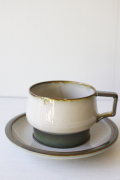 デンマーク、Jens.H.Quistgaard(イェンス・クイストゴー)デザインTEMAシリーズのカップ&ソーサーです。柔らかなグレーに、ブルーやブラウンが混ざり合った釉薬の掛かり具合が幻想的な雰囲気が魅力です。個々に釉薬のかかり方に個性があり、ヴィンテージならではの味わいをお楽しみください。こちらはぷっくりとした大き目サイズで、カフェオレやティーオーレなどを楽しんでいただけるでしょう。スタッキングできるので、収納にも便利です。