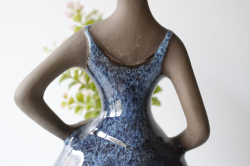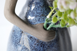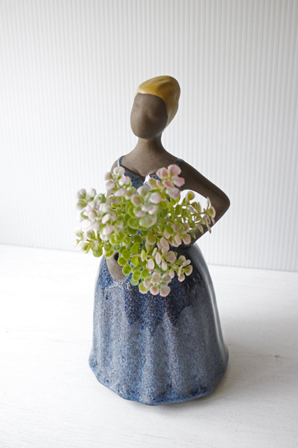 スウェーデン、jie gantofta社製の陶器の花瓶です。女性の片手に穴があいており、そこにお花をさすと女性がお花を抱えているようにみえる素敵なデザインです。ドレスにはツヤのある釉薬がかけられており、顔や手など素肌にはマットな素地のままという対比が温かな雰囲気を醸しています。凛とした姿勢の美しい佇まいです。