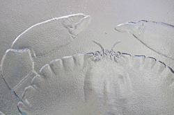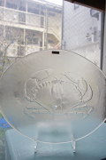 スウェーデン、コスタボダ社製のヴィンテージガラスのサービングプレートです。丸みのあるオーバル型で擦りガラス風の質感、カニがデザインされています。カルパッチョやスモークサーモン、魚介のマリネなどにいかがでしょうか。