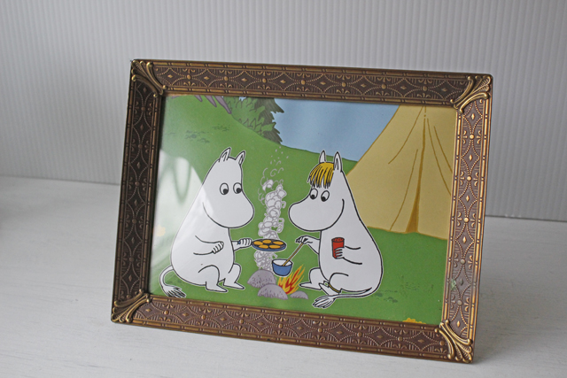 デンマークのアンティークショップで見つけたフォトフレームです。中にはアンティークの刺繍やレース、また写真や古い絵本の切抜きを入れても素敵なインテリアとしてお使いいただけるでしょう。掲載写真には古い絵本の切り抜きが入っています。