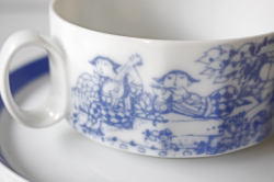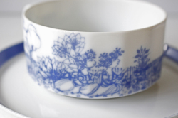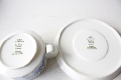 ドイツの一流ブランド、ローゼンタールのスタジオラインにて製造されたスープカップ&ソーサーです。フィンランド出身のデザイナーTapio Wirkkalaとデンマーク出身のBjorn Wiinbladのコラボ作品です。カップは緩やかな12角形、薄造りの繊細なフォルムに、緻密なタッチの独特な世界観の素敵なシリーズです。ソーサーにはTapio Wirkkalaの刻印があり、ローゼンタール100周年記念に製作されたものになります。今回入荷分は、未使用品でコンディションもよくおススメです。
