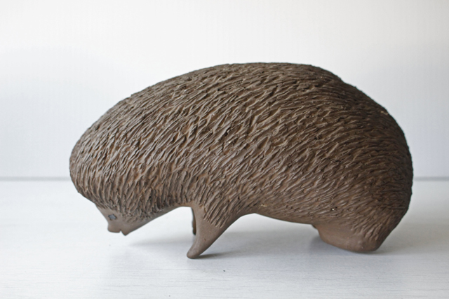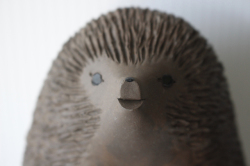デンマーク、エレン・カールセンデザインのハリネズミのお母さんです。とても美人で優しい目のお母さんです。こちらは水を飲んでいる様子をデザインしているので、入れ物に口を付けるようなフォルムとなっています。画像は、表情などが分かりやすいので、もたれ掛けさせて立たせています。