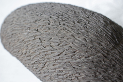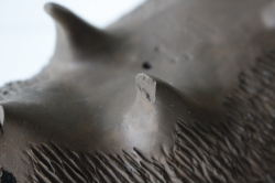 釉薬のかけられていない、素朴な土の質感が感じられ、丁寧に針の様子が表現されています。