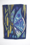 スウェーデン製のフレミッシュ織の壁掛けです。フレミッシュ織は、スウェーデンの中世より伝わるつづれ織りで、椅子の座面やバッグなどに使われてきました。ウールの糸で手間と時間をかけて丁寧に織られた手仕事は、お部屋の温かく彩ってくれるでしょう。古典柄が多い中でこちらは可愛らしい水辺の青い蝶々がモチーフ。そのままピンで刺して飾ってもよし、上部に棒をつけて壁掛けにしてもよいですね。