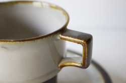 デンマーク、Jens.H.Quistgaard(イェンス・クイストゴー)デザインTEMAシリーズのカップ&ソーサーです。柔らかなグレーに、ブルーやブラウンが混ざり合った釉薬の掛かり具合が幻想的な雰囲気が魅力です。個々に釉薬のかかり方に個性があり、ヴィンテージならではの味わいをお楽しみください。