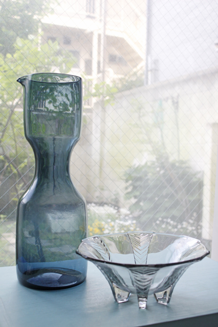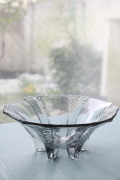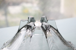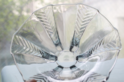 デンマークで見つけたヴィンテージのガラスの器です。朝顔の花が開いたかのようなラッパフォルムの器で脚付きのようにデザインされており、大変個性的な印象です。波を打っているようなラインが凝ったデザインで北欧のヴィンテージらしく大変おすすめです。イチゴやチェリーなどのフルーツやチョコレートなどおやつを乗せたりと多様にお使い頂けそうです。