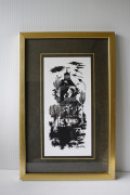 デンマークの国民的人気デザイナーBjorn Wiinblad(ヴョルン・ウィンブラッド)の美しい額絵(影絵)です。こちらは春・夏・秋・冬の4枚が存在するシリーズです。こちらは、冬になります。こちらは肉筆画ではありませんが、厚みのあるインクで丁寧に刷られています。