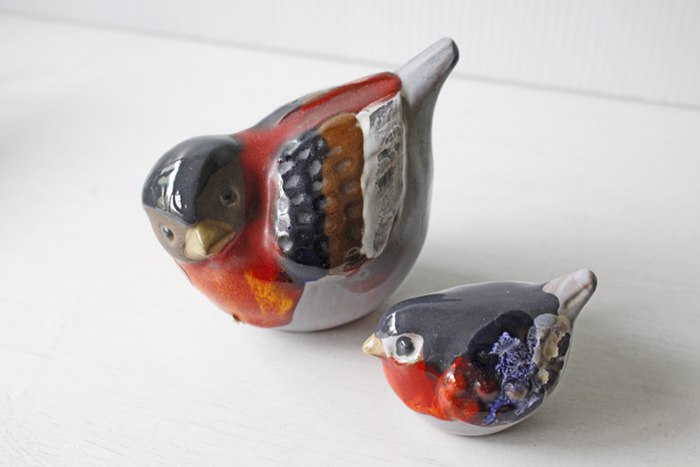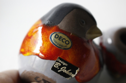 スウェーデン/DECO社のヴィンテージオブジェです。こちらはぷっくりとしたおなかの愛嬌のある小鳥の親子がモチーフです。小鳥は、古語の口笛を意味する和名「うそ」です。