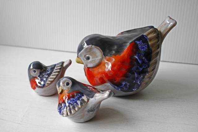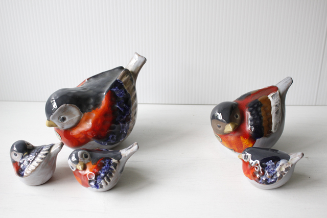 スウェーデン/DECO社のヴィンテージオブジェです。こちらはぷっくりとしたおなかの愛嬌のある小鳥の親子がモチーフです。小鳥は、古語の口笛を意味する和名「うそ」です。