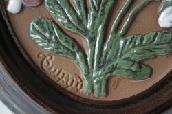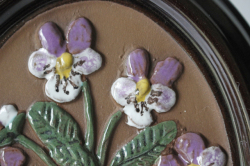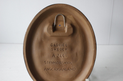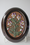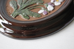 スウェーデンのガブリエル社製の陶器の壁掛けです。こちらは楕円タイプの陶板で真ん中にはぷっくりとした可愛らしいすみれの花がデザインされています。レトロ可愛いほっこりとしたデザインでおススメです。裏面には、壁に掛ける穴が開いています。