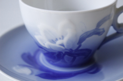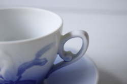 デンマーク、B&G、クリスマスローズのデミタスカップ&ソーサーです。デンマークを代表する陶器メーカーB&G社は1983年にロイヤルコペンハーゲンと合併するまで国を代表する作品の数々を生み出しました。こちらのクリスマスローズシリーズはブルーの美しいモチーフでロングランで生産されたシリーズです。持ち手のフォルムもエレガントで眺めているだけでも幸せな気持ちになる素敵なデザインです。