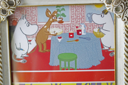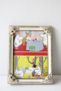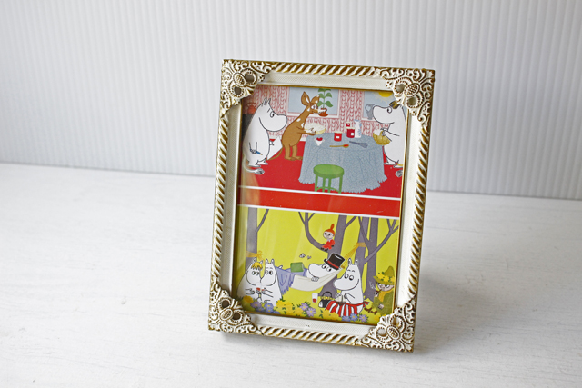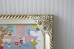 デンマークのアンティークショップで見つけたフォトフレームです。中にはアンティークの刺繍やレース、また写真や古い絵本の切抜きを入れても素敵なインテリアとしてお使いいただけるでしょう。掲載写真には古い絵本の切り抜きが入っています。