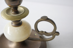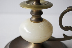 デンマークで見つけた真鍮のキャンドルホルダーです。こちらは真鍮と丸い石材の組み合わせのユニークなデザインです。オブジェとして飾って頂くと、落ち着いたアンティークのインテリアを演出できそうです。今回入荷分の2点は台座部分の真鍮の色が少し違います。