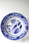 デンマーク、Royal Copenhagen(ロイヤルコペンハーゲン)/Alminiaのスーププレートです。こちらは白×コバルトブルーの鮮やかな色合いのプレートで、美しいクジャクがデザインされています。縁周りにもぐるりと描かれておりとても迫力があります。どこか東洋の雰囲気も醸しています。