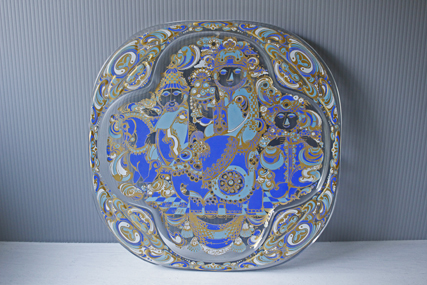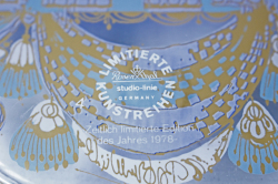 デンマークで人気のアーティスト/Bjorn Wiinblad(ヴョルン・ウィンブラッド)のイヤープレートです。こちらは1976年から1981年までの6年間だけ製作されたシリーズになります。クリスタルで出来ており、ゴールドと鮮やかなブルーでこちらはキリスト教の聖書に登場する東方の三賢者のモチーフで味わいのある表情、フォルムが特徴です。たっぷりと厚みのある贅沢な作りで眺めているだけでもほっこりした気分に浸れそうです。ドイツのローゼンタール社のスタジオラインで、リミティッドプロダクトです。コレクションにいかがでしょうか?裏面に壁掛け用のフックがついています。