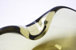 デンマーク、Holmegaard(ホルムゴー)のガラスのデザインボウルです。クリアグリーンとブラウンの混ざり合った美しい色合いです。オーバルのフォルムに淵の反り具合がとても個性的な、デザイン性に優れています。どっしりとした造りで大変存在感があります。テーブルに飾りながら、キャンディを入れたり、お花を活けたり、キャンドルを灯したり…オブジェとしても楽しめそうです。爽やかなクリアガラスがお部屋を涼し気に彩ってくれそうです。裏面に刻印ありです。