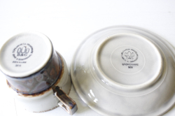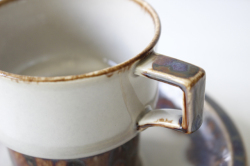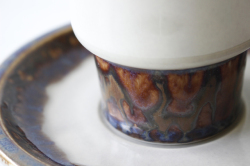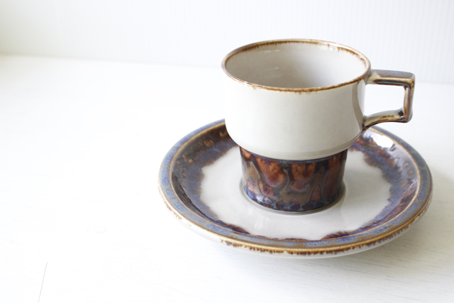 デンマーク、Jens.H.Quistgaard(イェンス・クイストゴー)デザインMexicoシリーズのカップ&ソーサーです。釉薬の流れによって出来た自然な景色、ブラウンの下から浮かび上がる紫の幻想的な雰囲気が素敵なお品です。お揃いでティーポット、クリーマーなどもあります。