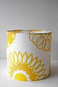 テーブルランプのシェードです。国内ランプシェードの専門店にてオーダーで作って頂いたもので、ヴィンテージの布や壁紙、北欧デザインの現行品の布などでいろいろ作ってみました。こちらはデンマーク製のファブリックで製作しました。ヒマワリのような明るく元気なお花がデザインされています。イエローの濃淡があり、単調な色合いでなく素敵です。お気に入りのランプの着替えとして、カラフルなシェードを取り入れてはいかがでしょうか?