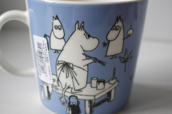 フィンランド、ARABIAのムーミンマグカップ(大)です。こちらはフィンランドのK-Cityマーケットの50周年を記念して作られたマグカップです。90年代に同じデザインで制作されたムーミンカップがありますが、こちらは400mlと大きめに作られていますので、たっぷりお飲みになりたい方にピッタリです。どこかノスタルジック調のタッチも愛らしく、お勧めです。