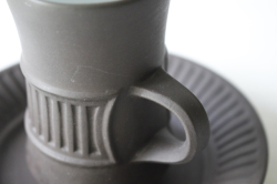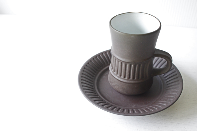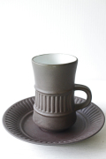 デンマーク、Jens.H.Quistgaard(イェンス・クイストゴー)デザインFlame Stone(フレームストーン)シリーズのカップ&ソーサーです。フレームストーンは、1957年にDANSKより発表されました。独創的なフォルム、味わい深いマットな質感と内側の白いコントラストが素敵です。クイストゴー本人もアトリエ兼自宅で愛用していたことでも有名です。こちらのシリーズは市場でも流通量が少なく、また繊細な陶器のためコンディションのよいものが入荷するのは稀なのでお探しの方はお見逃しなく!