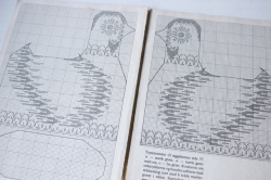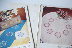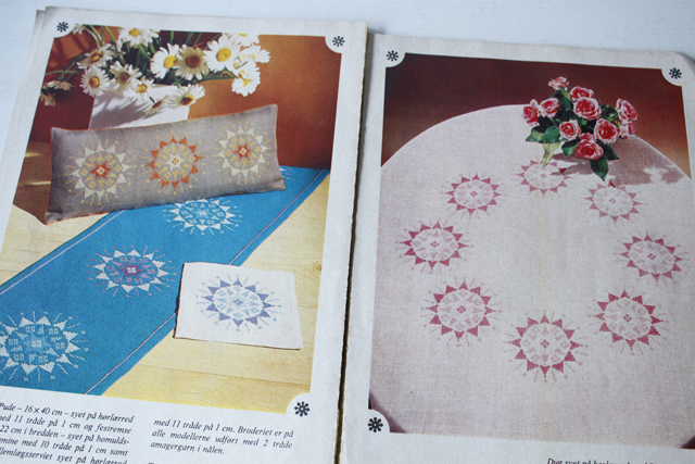 デンマークで見つけたヴィンテージの刺繍本です。たくさんの図案が掲載されています。アンデルセン物語のキャラクター、クリスマスや円形のテーブルクロスの図案などバラエティに富んでいます。お花や鳥などの北欧の“可愛いらしい”刺繍が好みの方にピッタリの1冊です。一部、出来上がりのカラー写真も掲載されておりとても参考になります。