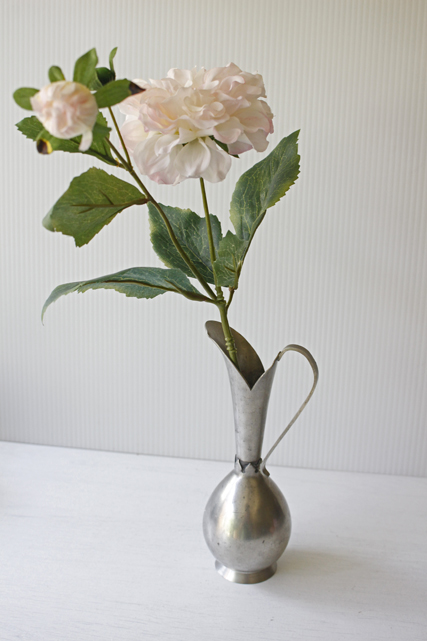 ノルウェー製のピューターの一輪挿し花瓶です。こちらは丁寧にハンドメイドで作成された味わいのあるデザインで、燻した様な銀色が美しい作品です。ピューターがお好きな方におすすめしたい作品です。