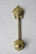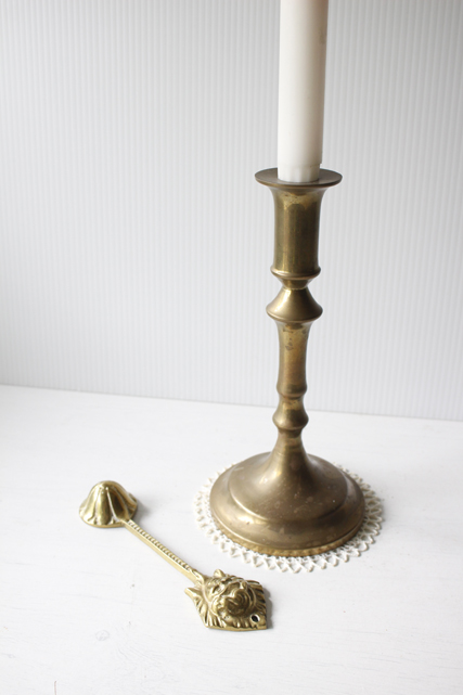 デンマークで見つけた真鍮のろうそくの消すためのカバーです。ろうそくを吹き消さないで、こちらの火消をかぶせるときれいに火を消す事ができます。こちらは、エンジェルの顔のモチーフで珍しいデザインの火消でとても趣があります。一緒に飾ると雰囲気もアンティーク、ヴィンテージらしい趣があり、素敵なインテリアが演出できそうです。