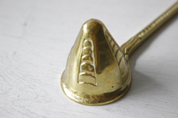 デンマークで見つけた真鍮のろうそくの消すためのカバーです。ろうそくを吹き消さないで、こちらの火消をかぶせるときれいに火を消す事ができます。。一緒に飾ると雰囲気もアンティーク、ヴィンテージらしい趣があり、素敵なインテリアが演出できそうです。
