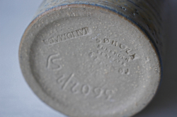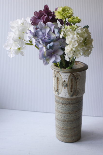デンマークの小さな島(ボーンホルム島)に1835年から1996年まで存在した名窯Soholm(スーホルム)のフラワーベースです。優しいサンドベージュの地にハンドペイントで絵付けが施されています。フォルムが機能的ですので、たっぷりのお花を活けて頂け、とても実用的です。