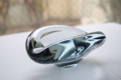 デンマークの王室御用達ブランド、Holmegaardのガラスボウルです。落ち着いたグレーカラーにどっしりと安定感のある美しい作品です。花生けとしてお使いいただいたりオブジェとして飾っても素敵でしょう。