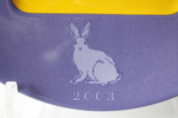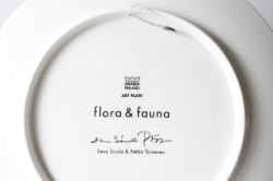 フィンランドのArabia/アラビア社のイヤープレート、Flora & Faunaのアートプレートです。こちらは、2000年から2011年まで12年間、毎年、四角いフォルムと丸いフォルムの2枚づつ、合計24種類が製造・販売されたイヤープレートとなります。1976年から1999年まで作られたカレワラプレートの後継として作られたシリーズで、フィンランドの寓話テーマを得て、植物と動物の2種類のイラストが2カラーで構成されています。2色の配色が独創的でモダンです。