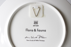 フィンランドのArabia/アラビア社のイヤープレート、Flora & Faunaのアートプレートです。こちらは、2000年から2011年まで12年間、毎年、四角いフォルムと丸いフォルムの2枚づつ、合計24種類が製造・販売されたイヤープレートとなります。1976年から1999年まで作られたカレワラプレートの後継として作られたシリーズで、フィンランドの寓話テーマを得て、植物と動物の2種類のイラストが2カラーで構成されています。2色の配色が独創的でモダンです。