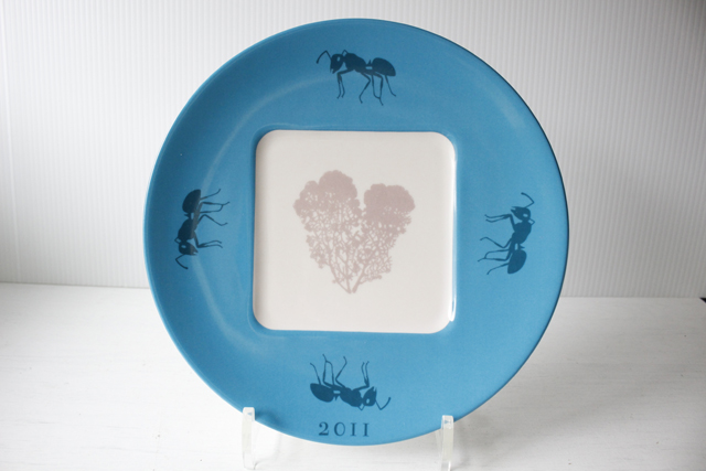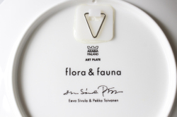 フィンランドのArabia/アラビア社のイヤープレート、Flora & Faunaのアートプレートです。こちらは、2000年から2011年まで12年間、毎年、四角いフォルムと丸いフォルムの2枚づつ、合計24種類が製造・販売されたイヤープレートとなります。1976年から1999年まで作られたカレワラプレートの後継として作られたシリーズで、フィンランドの寓話テーマを得て、植物と動物の2種類のイラストが2カラーで構成されています。2色の配色が独創的でモダンです。