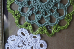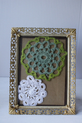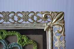 デンマークのアンティークショップで見つけたフォトフレームです。中にはアンティークの刺繍やレース、また写真や古い絵本の切抜きを入れても素敵なインテリアとしてお使いいただけるでしょう。掲載写真にはレース編みが入っています。