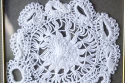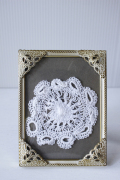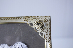 デンマークのアンティークショップで見つけたフォトフレームです。中にはアンティークの刺繍やレース、また写真や古い絵本の切抜きを入れても素敵なインテリアとしてお使いいただけるでしょう。掲載写真にはレース編みが入っています。