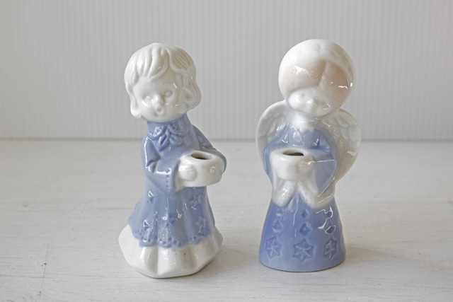 デンマークで見つけたキャンドルホルダーです。こちらはパステルブルーのやさしい色合いで可愛らしい天使の女の子がキャンドルを抱えるように佇む様子がデザインされています。 ■製造国:デンマーク ■サイズ :横幅5cm、高さ10cm ■コンディション:目立つダメージなく、よいヴィンテージコンディションです。