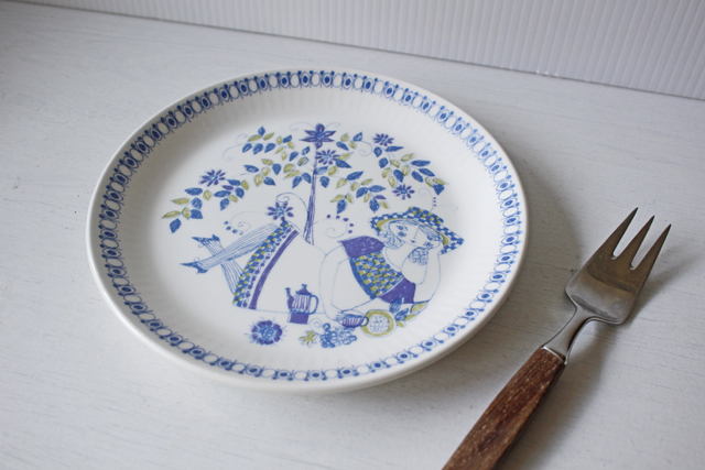 ノルウェー、フィッギオの中でも可愛らしいレトロモダンなモチーフが多く、今でも人気のあるチューリデザインのケーキプレートです。こちらはLottaシリーズで、ブルーを中心とした寒色系のお花や可愛い女の子がデザインされています。カップ&ソーサーやクリーマーなどいろいろなアイテムが入荷していますので、揃えてみてはいかがでしょうか。