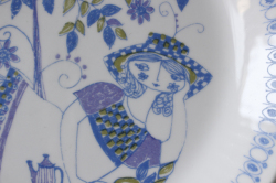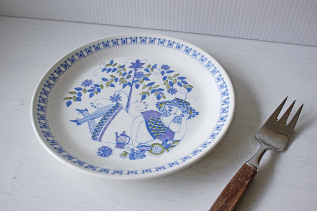 ノルウェー、フィッギオの中でも可愛らしいレトロモダンなモチーフが多く、今でも人気のあるチューリデザインのケーキプレートです。こちらはLottaシリーズで、ブルーを中心とした寒色系のお花や可愛い女の子がデザインされています。カップ&ソーサーやクリーマーなどいろいろなアイテムが入荷していますので、揃えてみてはいかがでしょうか。