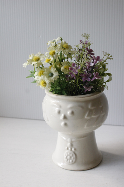 デンマーク製のヴィンテージオブジェベースです。こちらは可愛らしい子供が佇んでいるモチーフで、頭の部分が花瓶になっており、お花を飾って頂くとユニークで華やかなオブジェとして楽しんで頂けそうです。個性的な作品をお探しの方におすすめのデザインです。