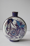 デンマーク、Royal Copenhagen(ロイヤルコペンハーゲン)のテネラシリーズの花瓶です。ニルス・トーソン(Nils Thorsson)の監修のもと、ノルウェー、デンマーク、スウェーデン出身の6人の若手女性の陶磁器作家たちが起用されています。こちらは、Marianne Johnson(マリアンヌ・ジョンソン)のデザインで、ブルーやパープルなど落ち着いた色合いのハンドペイントで描かれた大胆でインパクトのある絵付けが魅力です。贅沢に両面に鳥が描かれており、存在感のある佇まいです。