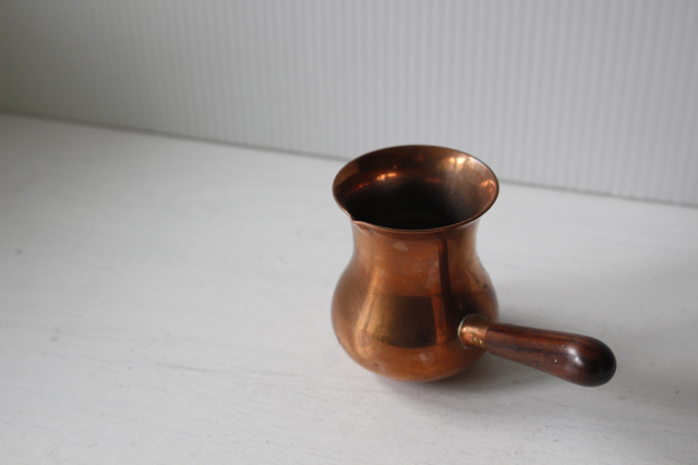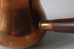 デンマークで見つけたチーク材の持ち手つき銅製の入れ物です。銅色の色合い曲線の美しいフォルムです。しっかりとした作り、持ち手付きと大変凝った作りになっています。アイデア次第で楽しんでみてください。シャビークラッシックがお好きな方、インテリアに取り入れてみてはいかがでしょうか。