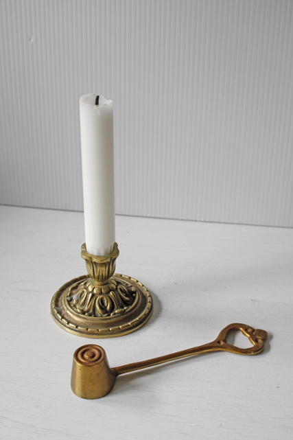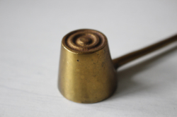 デンマークで見つけた真鍮のろうそくの消すためのカバーです。ろうそくを吹き消さないで、こちらの火消をかぶせるときれいに火を消す事ができます。一緒に飾ると雰囲気もアンティーク、ヴィンテージらしい趣があり、素敵なインテリアが演出できそうです。