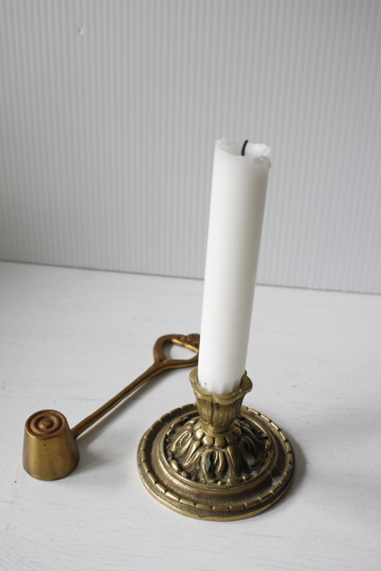 デンマークで見つけた真鍮のキャンドルホルダーです。こちらはフラットな安定感のあるフォルムのデザインで、レースなどと一緒に飾っていただくと一層素敵です。オブジェとして飾って頂と、落ち着いたアンティークのインテリアを演出できそうです。