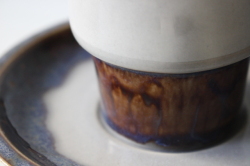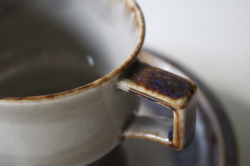 デンマーク、Jens.H.Quistgaard(イェンス・クイストゴー)デザインMexicoシリーズのカップ&ソーサーです。釉薬の流れによって出来た自然な景色、ブラウンの下から浮かび上がる紫の幻想的な雰囲気が素敵なお品です。
