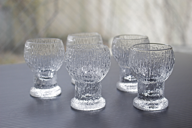 フィンランド、Ittala/Kekkeritシリーズグラスです。フィンランドのガラスデザイナー、ティモ・サルパネヴァの作品で、氷のような神秘的なデザインが大変美しいです。Kekkerit"とは、フィンランド語でお祭りやパーティのような意味で、陽気で嬉しい食卓でリキュールなどを楽しむのにぴったりの作品です。