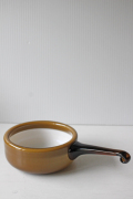 デンマークで見つけたHolmegaardのヴィンテージガラスの片手鍋です。外側のガラスと内側のミルクガラスの2重構造になったPaletシリーズは、デンマーク国内でも評価が高くたくさんのコレクターがいます。透明感のあるキャンディのような持ち手も愛らしく、実用として使っていただくだけでなくフルーツやデザートを盛り付けていただいても涼しげでよいでしょう。