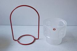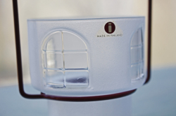フィンランド、Ittalaのガラスのキャンドルホルダーです。Jorma Vennolaデザインで、こちらは赤いワイヤーがセットになることで吊るして灯りを楽しんで頂けます。擦りガラスの中に透明の窓がデザインされており、ほっこりとした印象です。当店初入荷の珍しいキャンドルホルダーです。