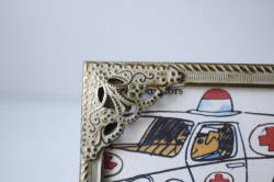 デンマークのアンティークショップで見つけたフォトフレームです。中にはアンティークの刺繍やレース、また写真や古い絵本の切抜きを入れても素敵なインテリアとしてお使いいただけるでしょう。掲載写真にはレース編みが入っています。