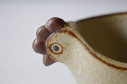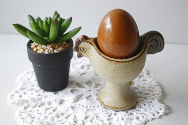 スウェーデン、リサ・ラーソン(Lisa Larson)のメンドリのエッグスタンドです。イースターの際に使用するタマゴ入れとエッグスタンドが作られました。可愛らしいサイズで、親鳥と一緒に飾っても、単品で飾ってもどちらでも楽しめます。釉薬のかかり具合も、味わいがありよい雰囲気です。